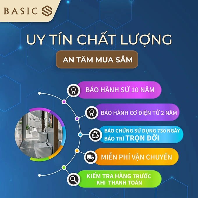 Chất liệu sứ cao cấp: Được phủ lớp men kháng khuẩn tiên tiến, ngăn chặn sự hình thành của vi khuẩn và nấm mốc lên đến 99%.